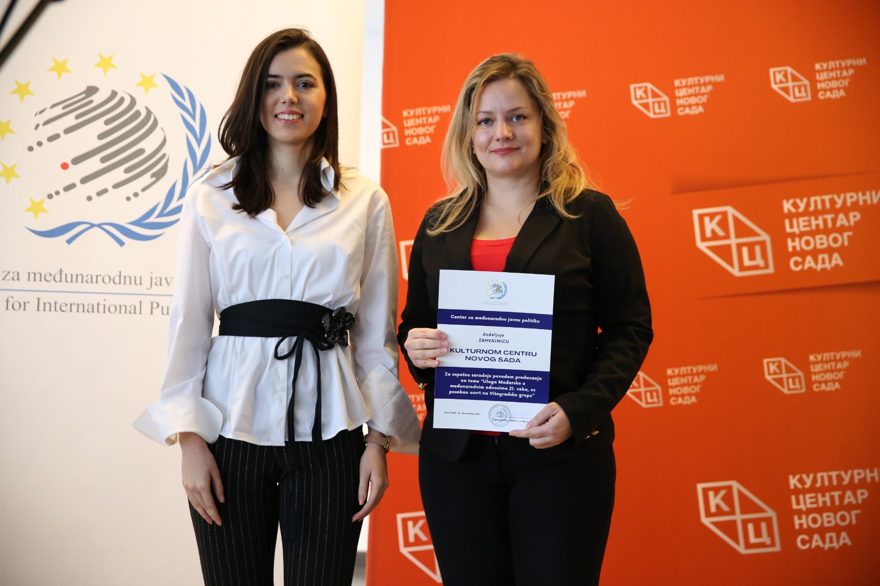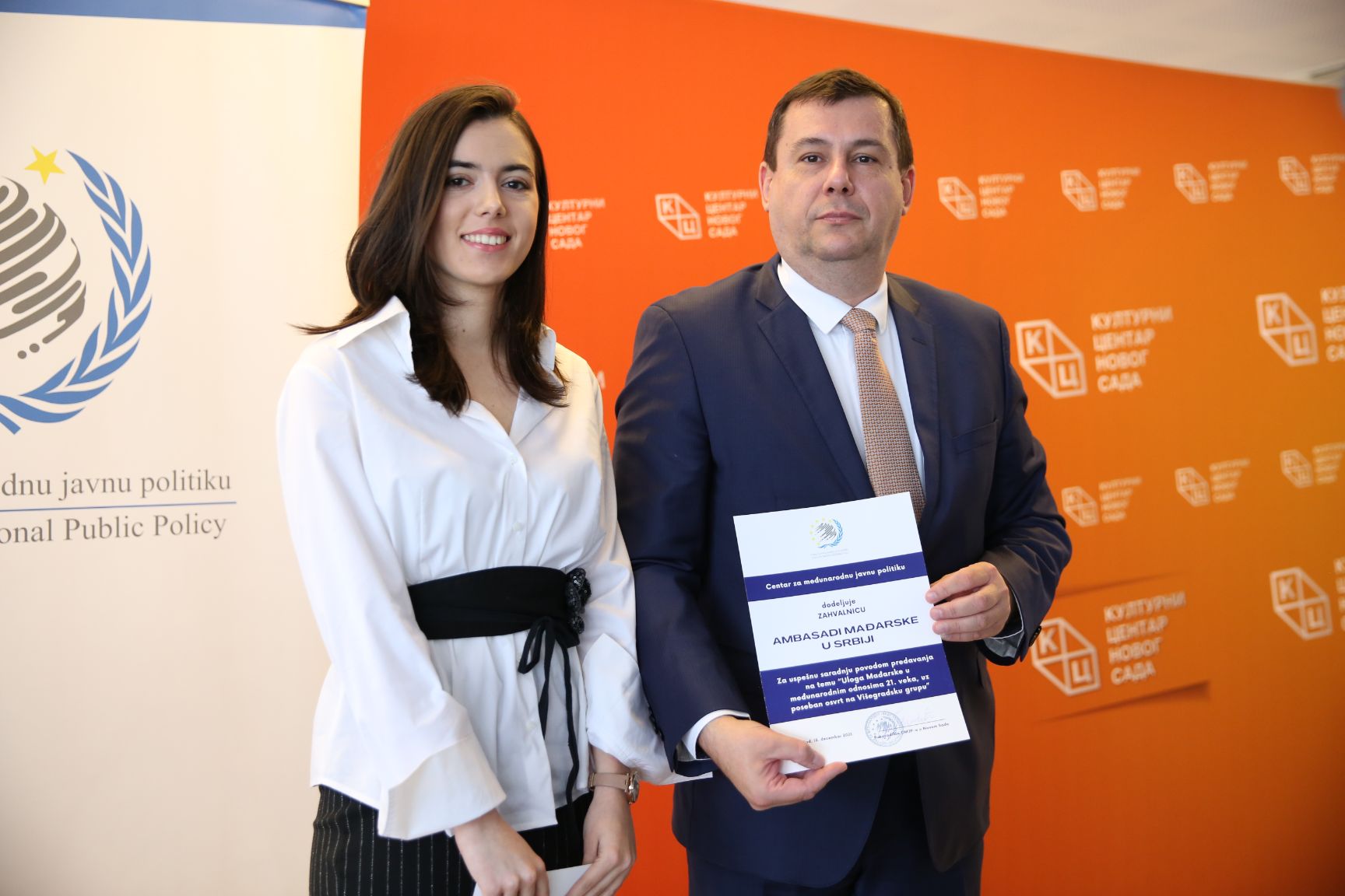 Поздравну реч упутио је градоначелник Вучевић, након чега је отпочело предавање амбасадора Пинтера. Њ.Е. Пинтер, нагласио је да однос Мађарске и Србије краси велико пријатељство. Однос Србије према мањинским народима могао би да служи као пример европским земљама, став је амбасадора Пинтера. Мађарска снажно подржава пројекат Отвореног Балкана који доприноси стабилности и миру у овом делу Европе, нагласио је он. Директор КЦНС Бојан Панаотовић захвалио се амбасадору Пинтеру на подршци и разумевању које Мађарска има за Србију и нагласио да ће предавање амбасадора бити емитовано на изузетно гледаном јутјуб каналу КЦНС. Центар за међународну јавну политику у чијој организацији је уприличен догађај уручио је захвалнице Њ.Е. Атили Пинтеру и Сунчици Марковић, помоћници директора КЦНС.