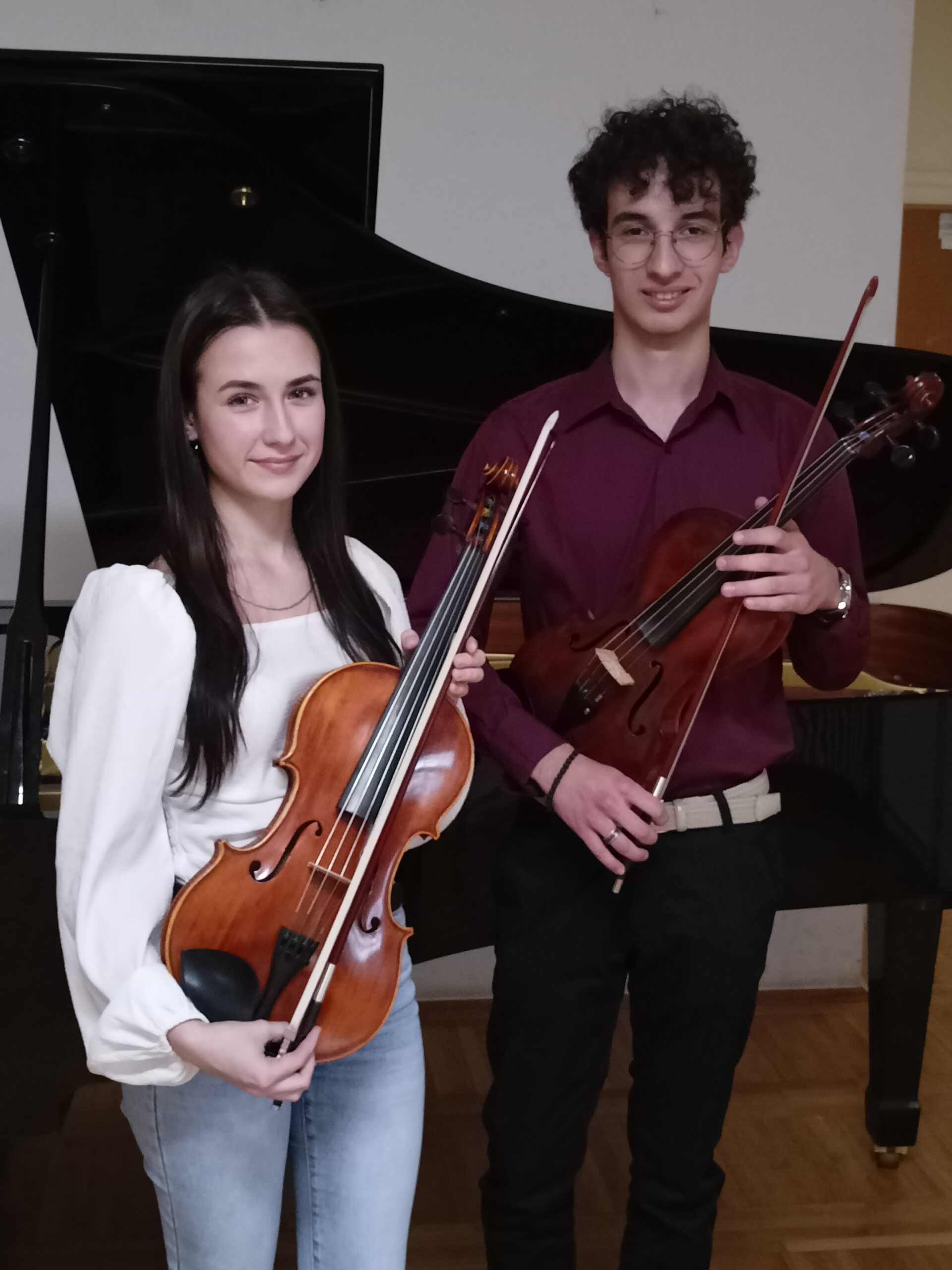 Виола Бакош је рођена у Сенти, 21. 9. 2003. године. Нижу музичку школу завршила је у Бачкој Тополи, у класи проф. Гала Јожефа. Практичну музичку гимназију „Вантуш Иштван” завршила је у Сегедину у класи проф. др С. Добош Марте. Студије виоле уписала је 2023. године на Академији уметности у Новом Саду у класи др ум. ДушицеПоловине, редовног професора виоле. Виола Бакош као солиста на виоли добитница је следећих награда: I награда на такмичењу String fest у Ср. Митровици 2023. године I награда на такмичењу Artisti del Arco у Ср. Карловцима 2023. године Као члан клавирског квартета добитница је следећих награда: I награда на такмичењу Дани музике у Бачкој Тополи I награда на државном такмичењу у Секешфехервару, Мађарска Лауреат на такмичењу у Комарну, Мађарска Милош Груборовић је рођен у Београду, 30. 9. 2004. године. Нижу и средњу музичку школу Јосип Славенски завршио је у Београду, у класи проф. Иване Топаловић. Студије виоле уписао је 2023. године на Академији уметности у Новом Саду у класи др ум. Душице Половине. Милош Груборовић као солиста на виоли добитник је следећих награда: III награда на Републичком такмичењу у Београду 2022. године II награда на такмичењу Artisti del Arco у Ср. Карловцима 2023. године Као члан оркестра остварио је гостовање у Шпанији 2022. године. Марина Микић (клавир) завршила је основну и средњу музичку школу у Херцег Новом, у класи проф. Зорана Реџића. Студије клавира је уписала на Академији уметности у Новом Саду, где је и дипломирала у класи проф. Кемала Гекића. Усавршавала се на мајсторским курсевима код реномираних педагога као што су Игор Ласко, Владимир Крпан, Константин Богино, Владимир Огарков, Алексеј Наседкин, Јелена Рихтер, Јокут Михаиловић, Арбо Валдма, Кемал Гекић и Дориан Лељак. Током школовања освојила је више републичких и савезних награда. Свирајући први реситал са једанаест година, Марина Микић је развила широк пијанистички репертоар, који обухвата значајна реситалска, камерна и оркестарска дела. Наступала је у Словенији, Аустрији, Црној Гори, Италији, Хрватској и Србији. Снимала је за РТС и РТВ Црне Горе. Ангажована је у својству сарадника на Катедри за гудачке инструменте (класа виоле проф. др Душице Половине, класа виолине проф. Михала Будинског) и на Катедри за клавир (класа проф. Ратимира Мартиновића) на Академији уметности у Новом Саду. Фото: Приватна архива