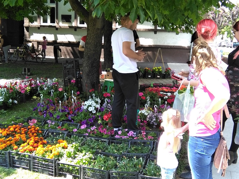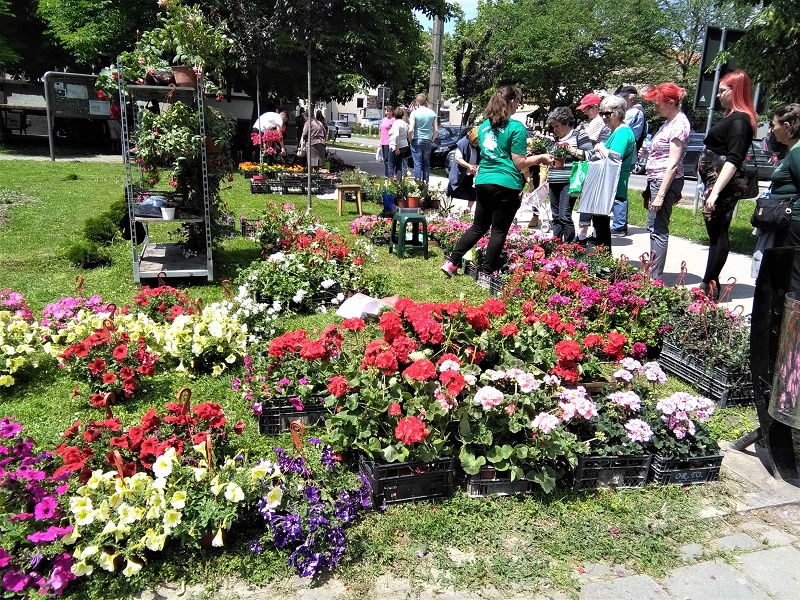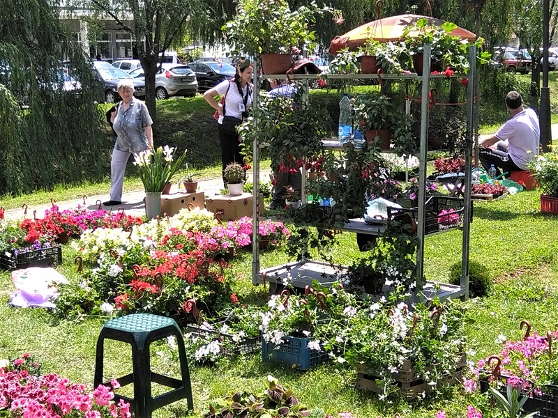 У суботу, 25. маја од 10 до 16 часова у Парку Зузке Медвеђове одржана је продајна изложба цвећа, садница и украсног растиња. Посетиоци су имали прилику да купе саднице једногодишњих биљака, као и понеке дрвенасте одгајене биљке и кактусе. Међу продавцима и двадесетогодишњи Јован Војводић из расадника Савановић из Темерина, објашњава нам како да гајимо кадифице, мушкатле, каранфиле, петуније, бегоније, а има код њега и увек интересантних орхидеја. Пиштике каже само у хладовини, а за прелепу бугенвилију у пуном цвету лети доста сунца али потребно нам је место да презими заштићена од мраза. Продавци су љубазни, радо дају савете: да вам кактуси процветају обезбедите им зимско мировање без заливања и превише сунца. Има и резаног цвећа, ириса, а у саксијама дивних минђушица и разних пузавица. За свачији укус понешто.