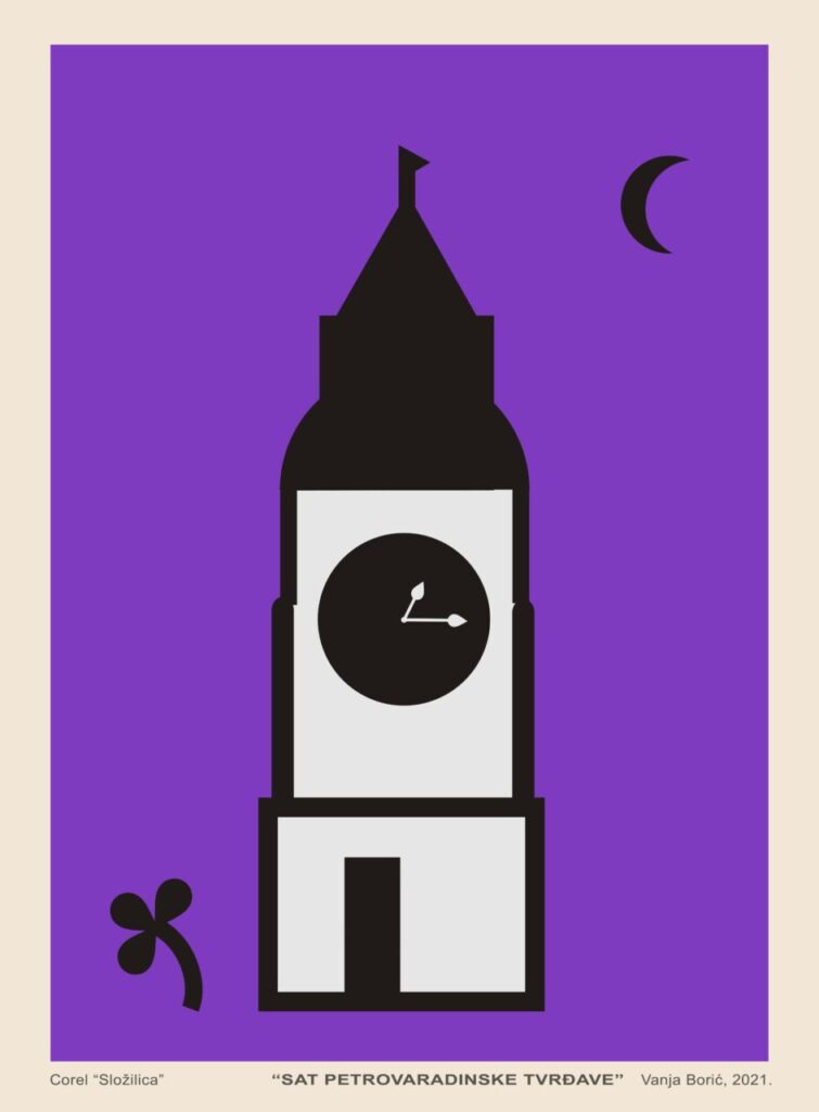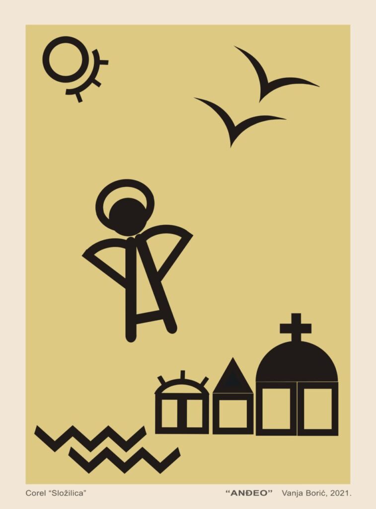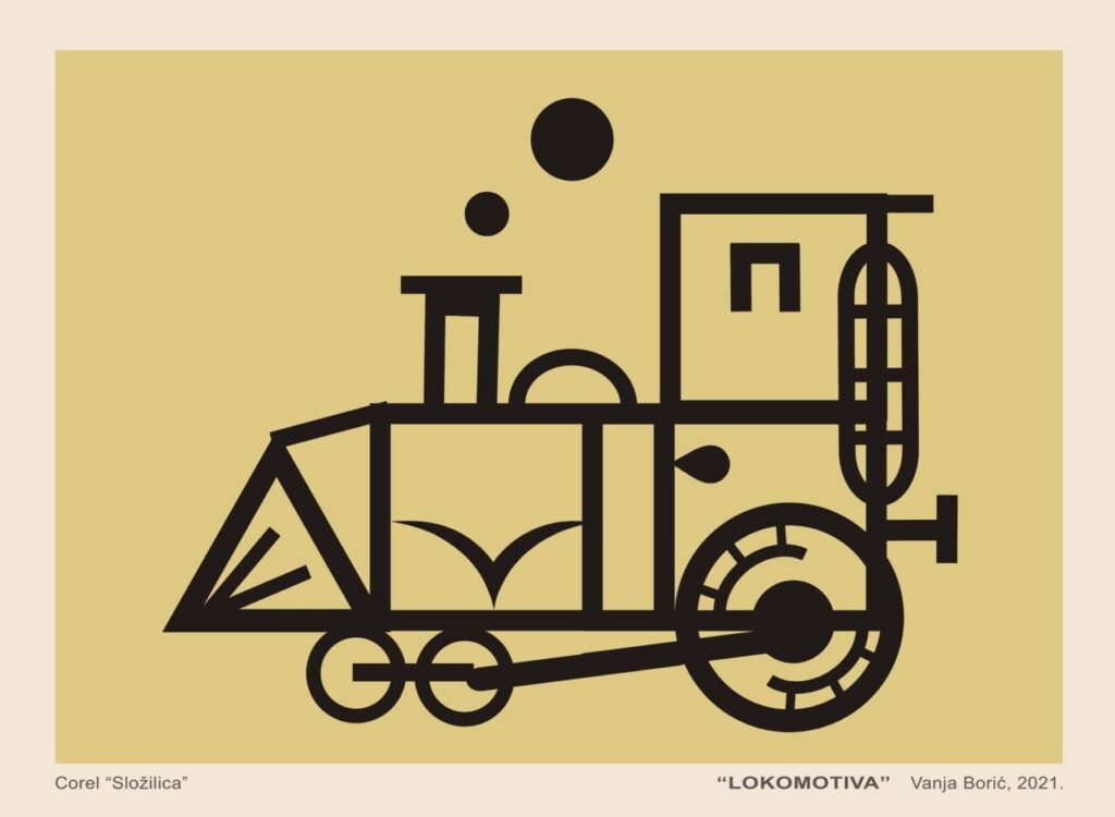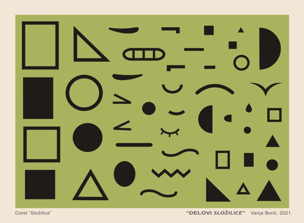 А, да се ликовни арсенал „Сложилице“ не исцрпљује овим поменутим поетикама, доказјују саме графике Вање Борић, презентоване на овој изложби. Као прво, лого играчке је семантички вишеслојан. Рецимо да он предстваља лик насмешеног и занесеног, младог златокосог принца из неке словенске бајке. Али, он истовремено представља и кућу. Забат те куће, даље, појављује се као зимска капа на глави тог принца, док се, опет, цела кућа може сагледати као кратка, шарена и зашиљена графитна оловка – симбол цртања. (Намерно не наводимо писање, јер оно је тек један нарочит вид цртања уопште) А, овде се црта слагањем. Сложеност силуете „Бициклисте“ указује на могућност да се досетљиво и на минималистички начин објекат представи тродимензионално. Упоређујући „Баку“ и „Вандрокаша“, можемо да уочимо суптилне разлике између једне изражајне физиономије и једног композицоно надограђеног емотикона. „Локомотива“, „Пчелица и саће“ и „Птица и цвет“ сведоче о оном већ споменутом инфантилном карактеру, док „Сат Петроварадинске тврђаве“ може да се посматра и као оригинална варијација на тему логотипа.