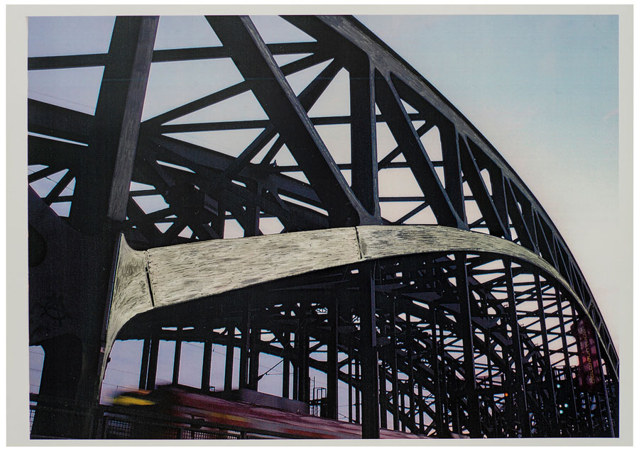 У једној серији радова насталих на споју класичне фотографије и цртачког поступка Силвија представља ноћне кадрове Диселдорфа, пре свега са фокусом на архитектонске вертикале ТВ торња и пилона моста. Наиме, покретом руке и поигравањем експозицијом уметница креира динамичне композиције готово апстрахујући виђени призор. Светлосне линије граде таласасте ритмичке серпентине или сплетове неухватљивог тока. Ово сложено неонско ткање у синергији са дифузним расејањем светла и маглинама, попут еха на тамном фону, готово дематеријализе објекте и своди их на оптичке и временске силуете. Посредством кинетичког елемента у пројекцији погледа, ауторка преиспитује механизме перцепције, доживљаја амбијента, сећања и животног искуства на линији између постојаности и ефемерности, реалности и фикције. Сходно томе, део ове целине су и аутопортрети у простору музеја Кунстпаласт, где огледалске рефлексије и дисторзија форме уводе самог субјекта стваралачког чина у оквир проблемског наратива.Други циклус фотографија са призорима Диселдорфа и и околних градова – Келн, Есен… – послужио је као основа на којој ауторка 16 година касније врши сликарске интервенције. У питању је креативни дијалог са сопственим радом између два места, два времена и два медијска приступа. Ови фрагменти савремене архитектуре, индустријских постројења и ентеријера диселдорфске уметничке академије у себи носе енергетски потенцијал доживљеног искуства. Елементи на фотографијама – унифициране јединице фасада, системи фабричких цеви, челична конструкција моста или делови наслона столице – у свом ритмичком низању откривају сродност са ауторским концептом у сликарској пракси. Хроматске апликације на постојећем фото-палимпсесту нису смишљене са идејом да створе узбудљив визуелни и медијски контраст продубљен временском дистанцом између два креативна чина, већ да још чвршће интегришу резултат пређашње перцепције у логичку матрицу беспредметног проседеа. Широке бојене површине које покривају читаве делове објеката/простора и линеарни акценти, често у виду дугих или кратких узастопних „резова“, као и поентилистички моменти, негде једва приметни, понављају динамику елемената фотографисаног простора. Племенитост златних и сребрних тонова и њихова текстурна својства стварају илузију светлосних ефеката, појачавајући оне реалне, забележене објективом, а уједно се могу читати и у кључу алхемијске симболике и могућих отвора ка мета-простору. Наглашавајући атмосферу тихог трајања, уметница готово да уздиже импресије о конкретном амбијенту на ниво ванвременског. Тек понеки графичко-ликовни наговештај представља копчу са меморијом места: број 014 – ознака или лозинка за улазак у радни простор класе коју је Силвија похађала на диселдорфској Академији, стрелице-координате које позиционирају наступ Лорана Гарнијеа у визуализацију клуба Арт у Есену, где је познати диџеј тада наступао. Синергија фотографије и сликарског пигмента у раду Силвије Ковјенић својеврсна је парафраза идеје о хармонији живота и уметности унутар једног хабитуса.