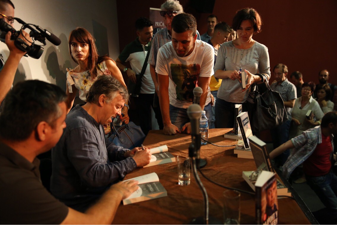 Na samom početku popularni roker, pozorišni reditelj a sada i talentovani pisac, osvrnuo se na svoju prvu romansiranu biografiju „Fajront u Sarajevu” koju je objavio pre četiri godine u izdanju Lagune i Kompanije Novosti.