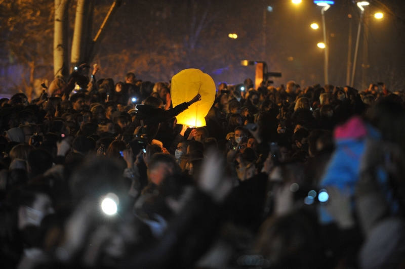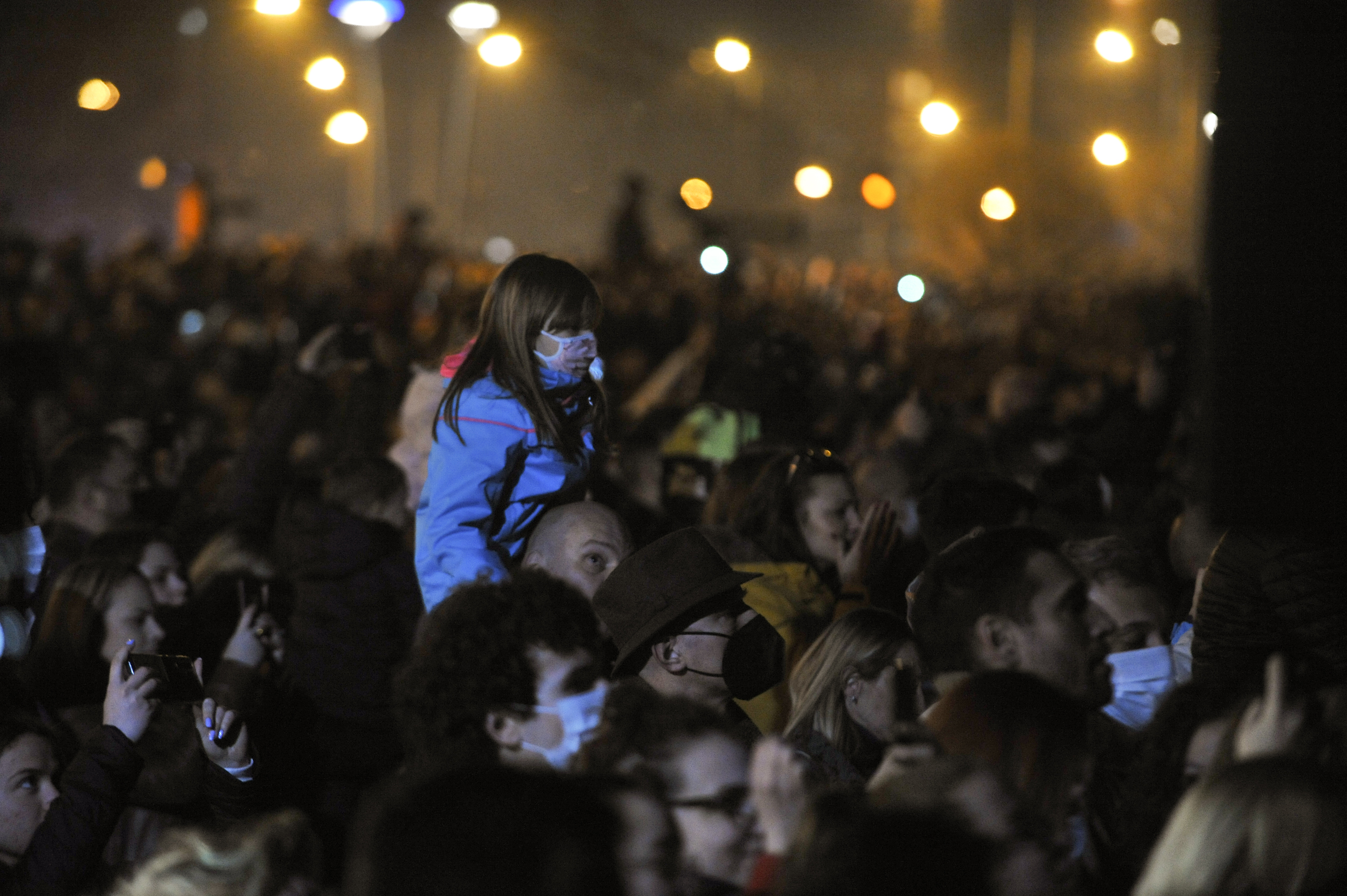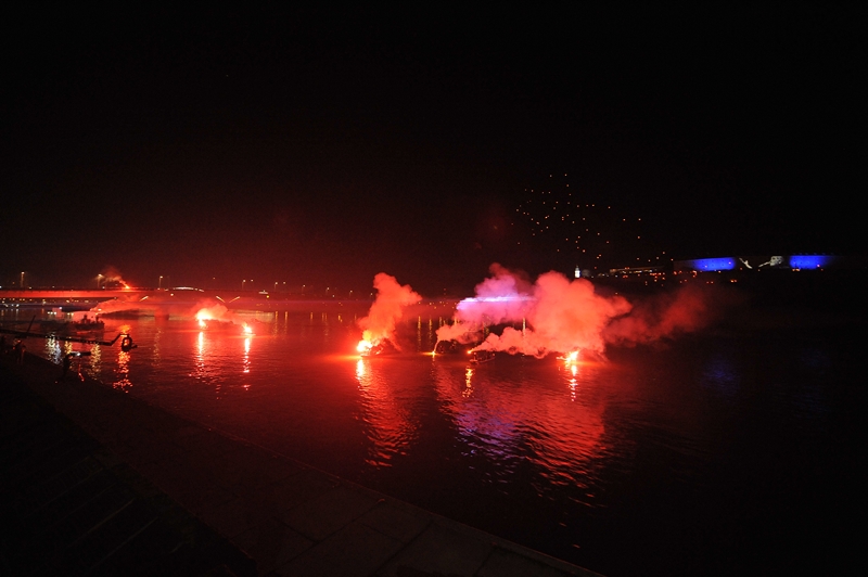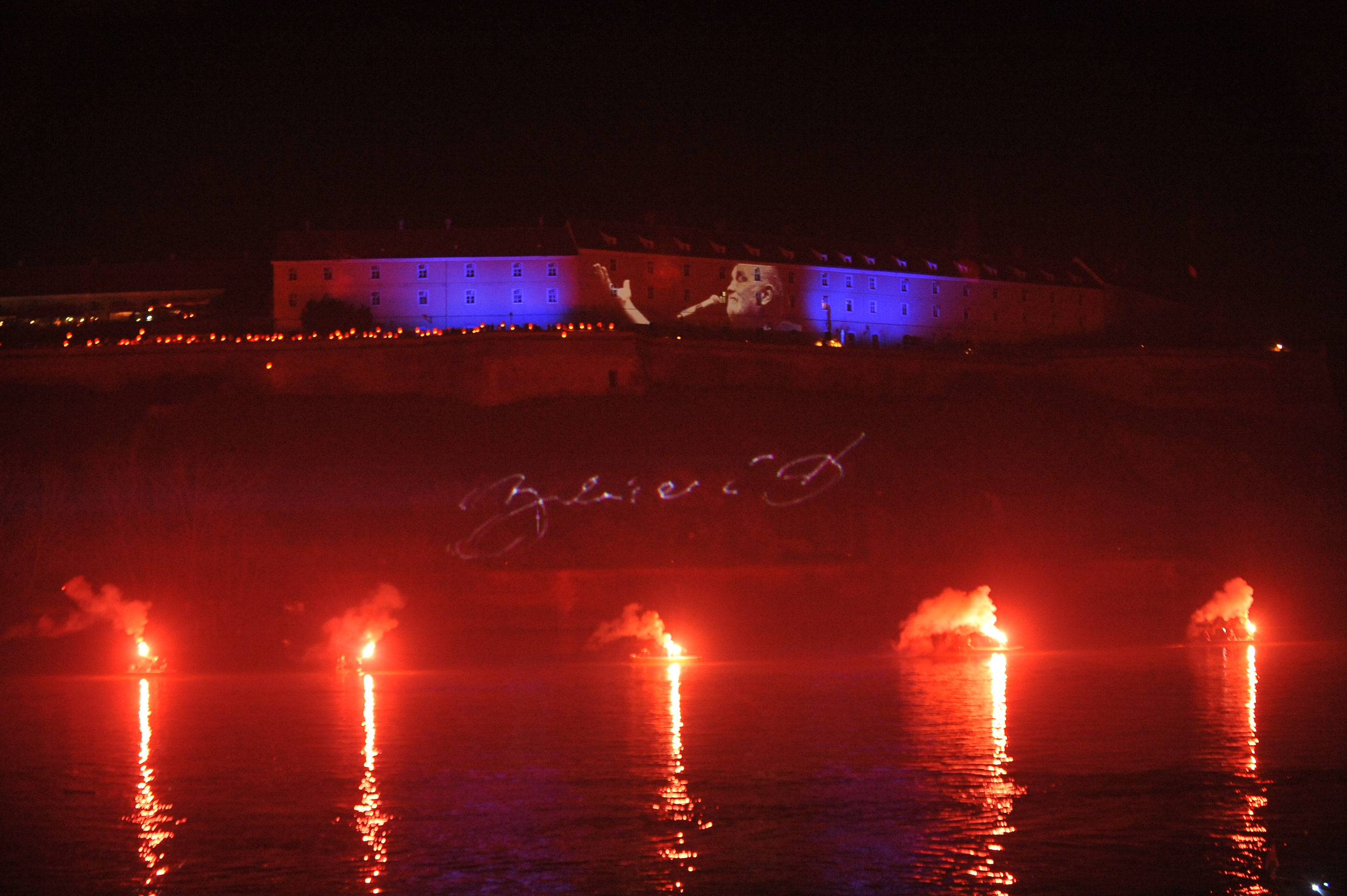 Pred velikim brojem Novosađana okupljenih na Keju Žrtava racije u 19 časova počeo je performans “Noć kada je Đole preplivao Dunav”, na Petrovaradinskoj tvrđavi i mostu su se u ugasila svetla, preko razglasa se čula pesma“Regruterka“ i krenula je povorka dobošara.Kejom se razlivala pesma „Noć kad sam preplivao Dunav“ dok su se Dunavom kretali čamci sa bakljama, a ka nebu su leteli lampioni.Performans je završen uz zvuke pesme “Odlazi Cirkus” u izvođenju hora i solistkinje opere SNP-a.Galeriju fotografija pogledajte u nastavku.Za Vojvođanske foto: K.Nenad