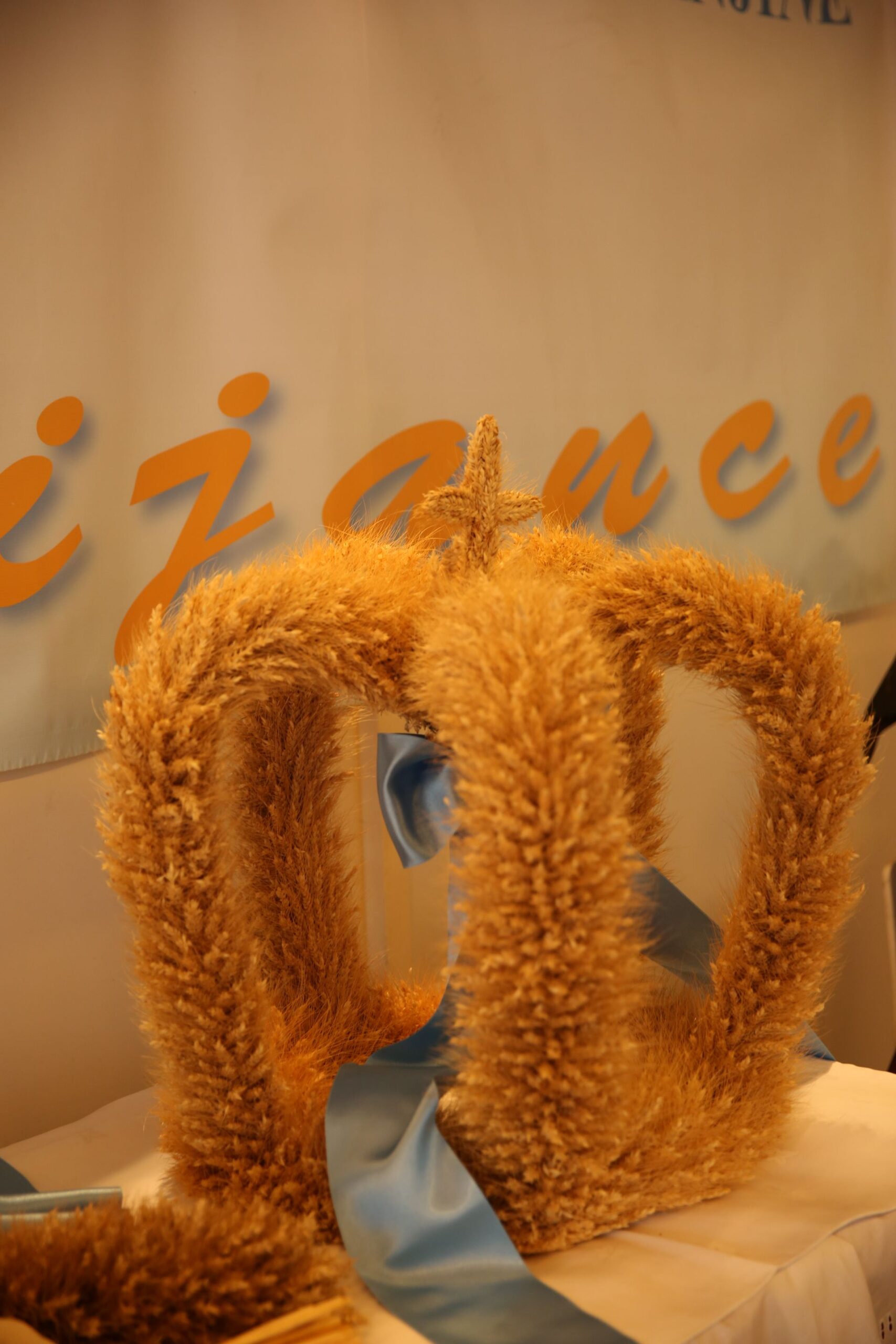 У наставку програма је председница Националног савета буњевачке националне мањине указала на значај овог програма следећим речима: „Дужијанца је један од значајних националних празника наше заједнице и централне личности те Дужијанце јесу бандаш и бандашица који данас долазе из Суботице (КУД „Александрово“). Маријан Хорвацки је бандаш, а Ивона Ивковић је бандашица“, објаснила је председница др Сузана Кујунџић Остојић. Након представљања бандаша и бандашице, реч је преузела Ката Кунтић која је као аутор изложбе представила и објаснила симболе Дужијанце. Ове године посебно је био истакнут симбол круне, а као најважнији симбол представљен је „крув“, а потом и венац од новог жита који је носио бандаш.