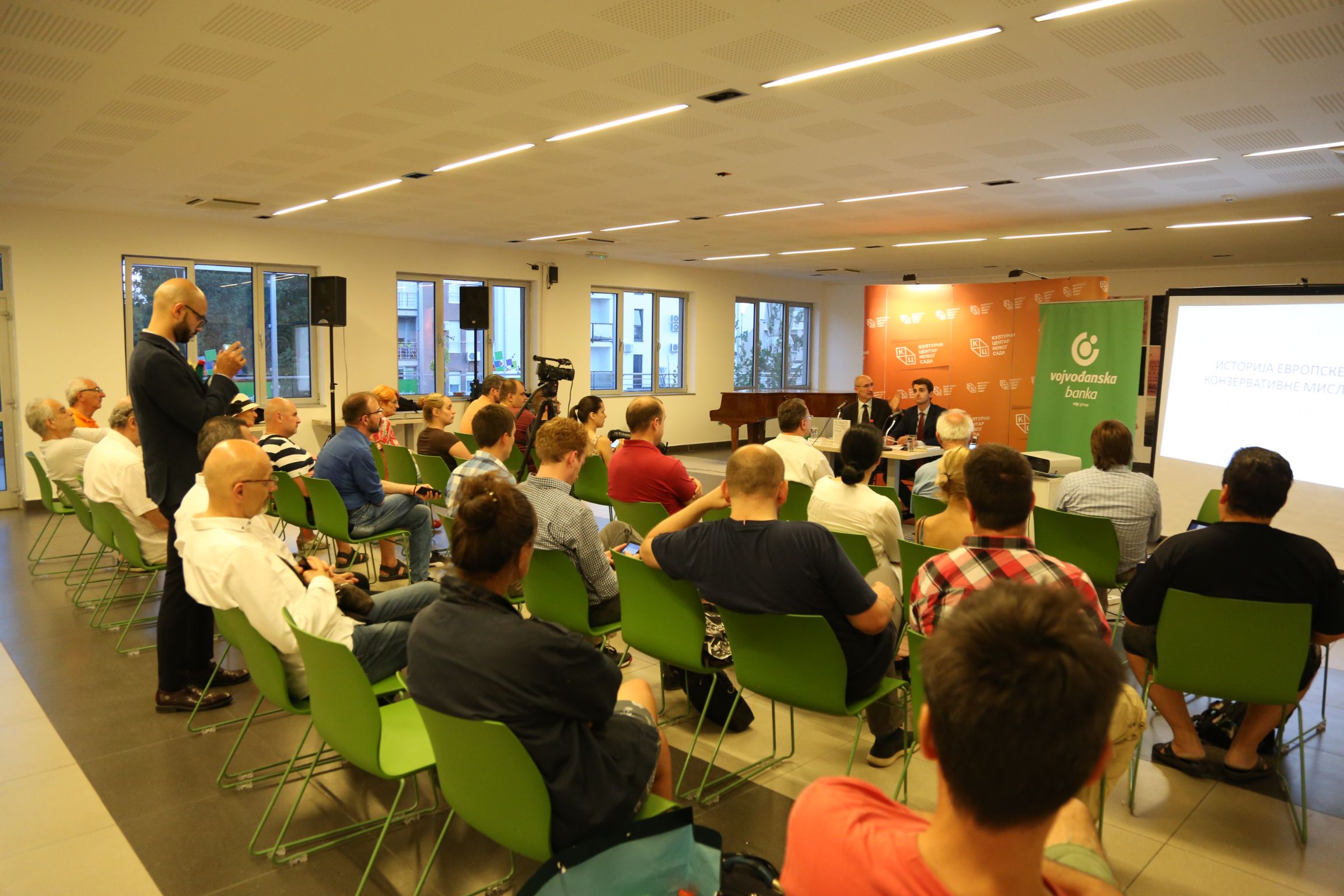 Pozdravljajući publiku u KCNS, Đurković je rekao da će posle novosadske uslediti promocija i u Beogradu. Reč je o knjizi „Istorija evropske konzervativne misli“ koja je objavljena na engleskom jeziku kod uglednog američkog izdavača „Regneri pablišing“.