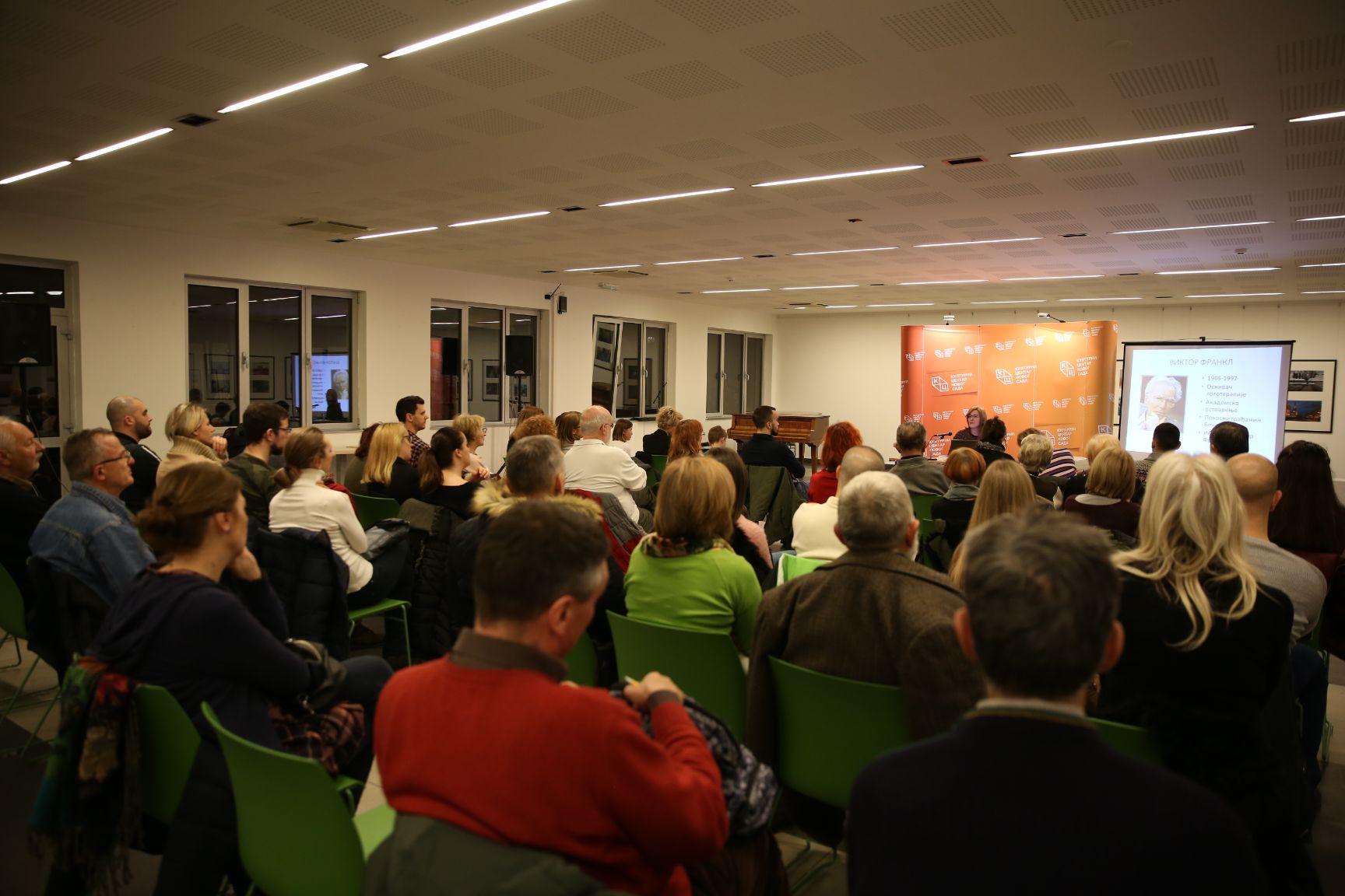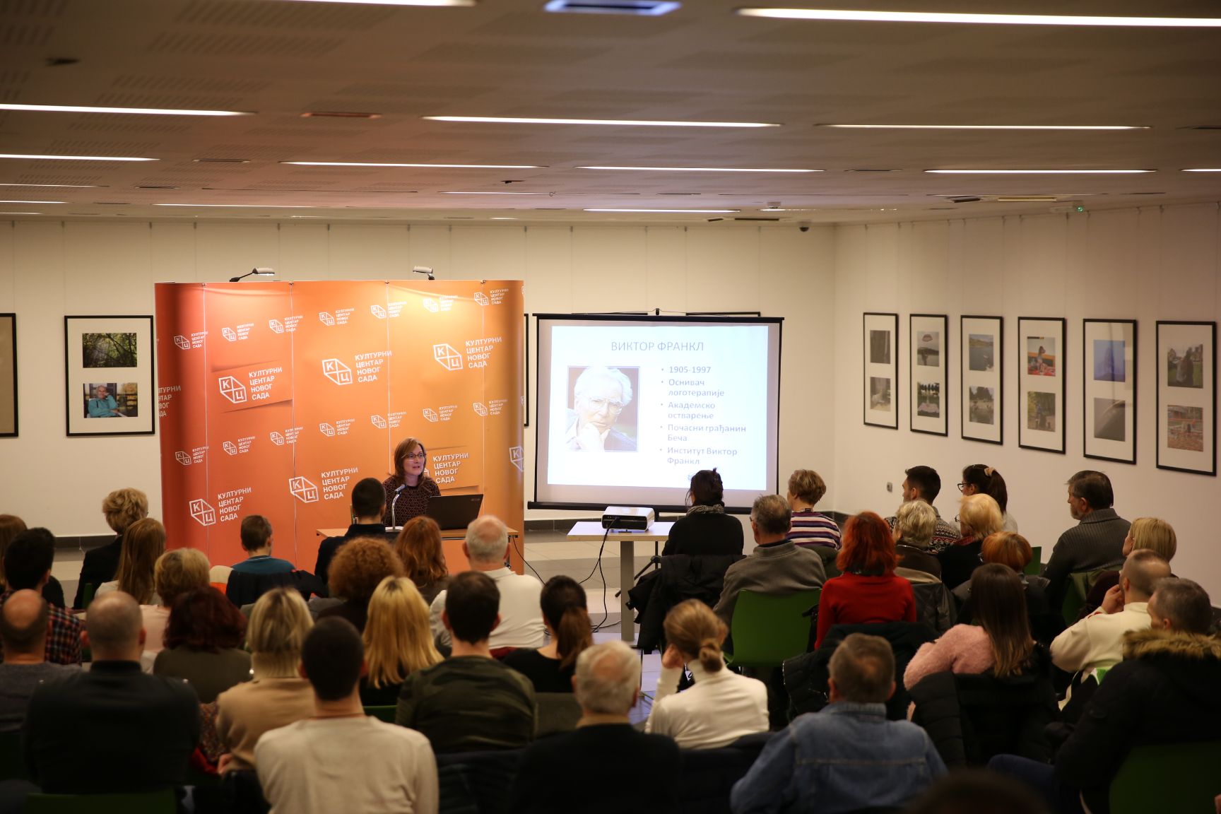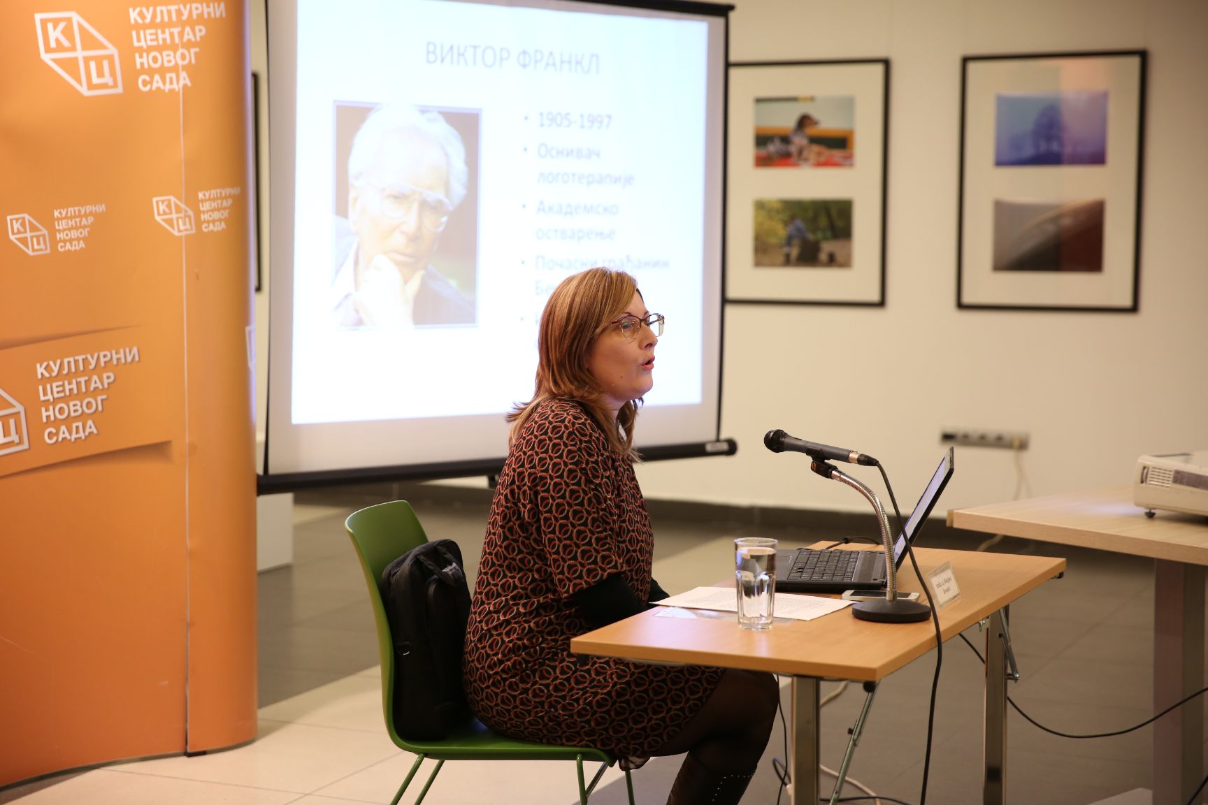 Зечевићева је на почетку предавања казала да је Виктор Франкл (1905 – 1997) био човек – извор снаге и смисла који је преживео Аушвиц и почасни грађанин Беча. Захвалила се Културном центру Новог Сада, јер је у овим „леденим данима“ дао прилику да се чује нешто више и о Виктору Франклу.