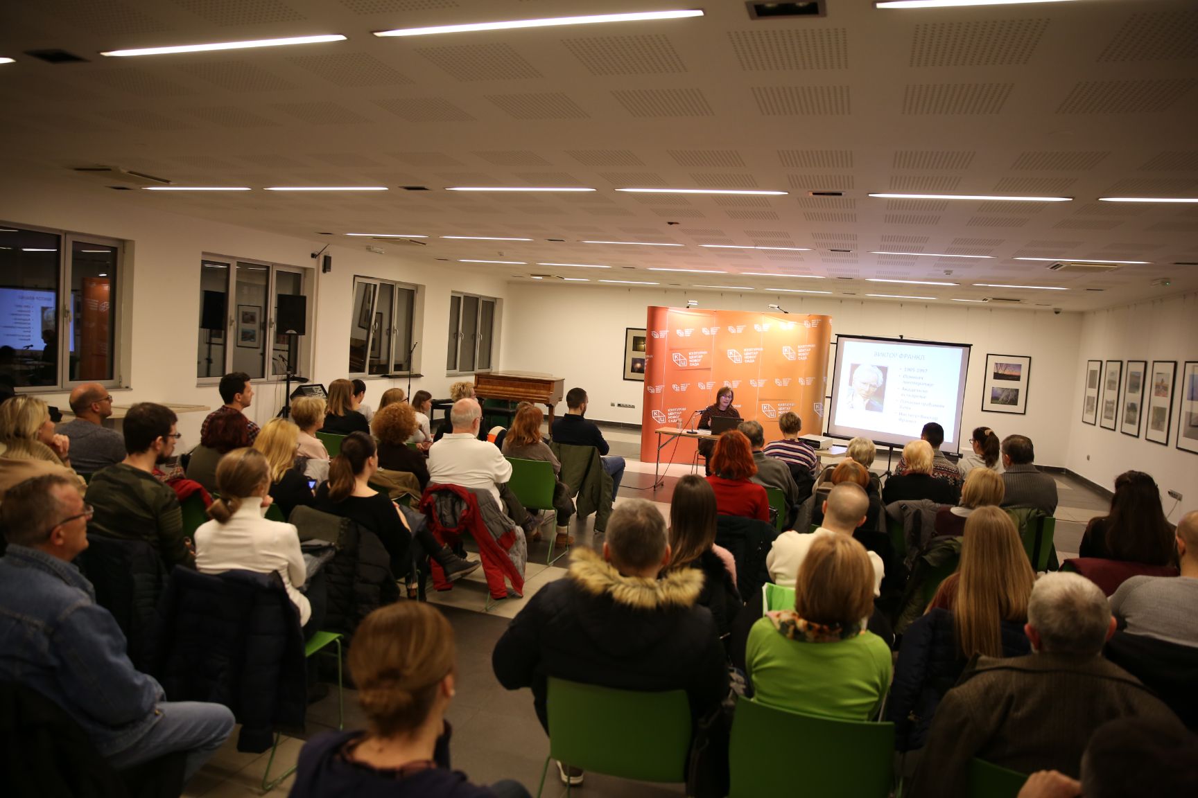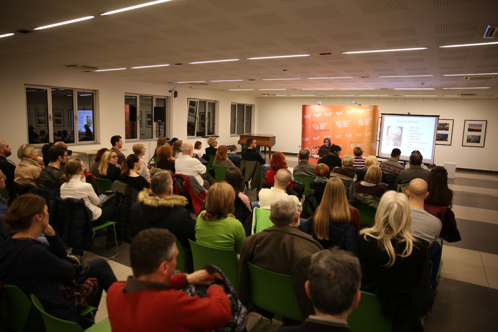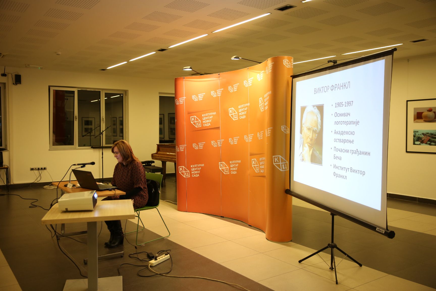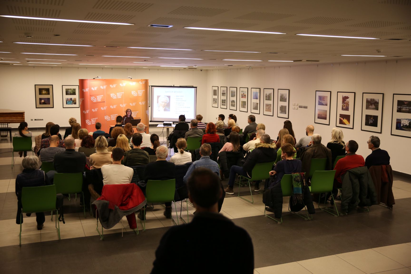 Зечевићева је на почетку предавања казала да је Виктор Франкл (1905 – 1997) био човек – извор снаге и смисла који је преживео Аушвиц и почасни грађанин Беча. Захвалила се Културном центру Новог Сада, јер је у овим „леденим данима“ дао прилику да се чује нешто више и о Виктору Франклу.