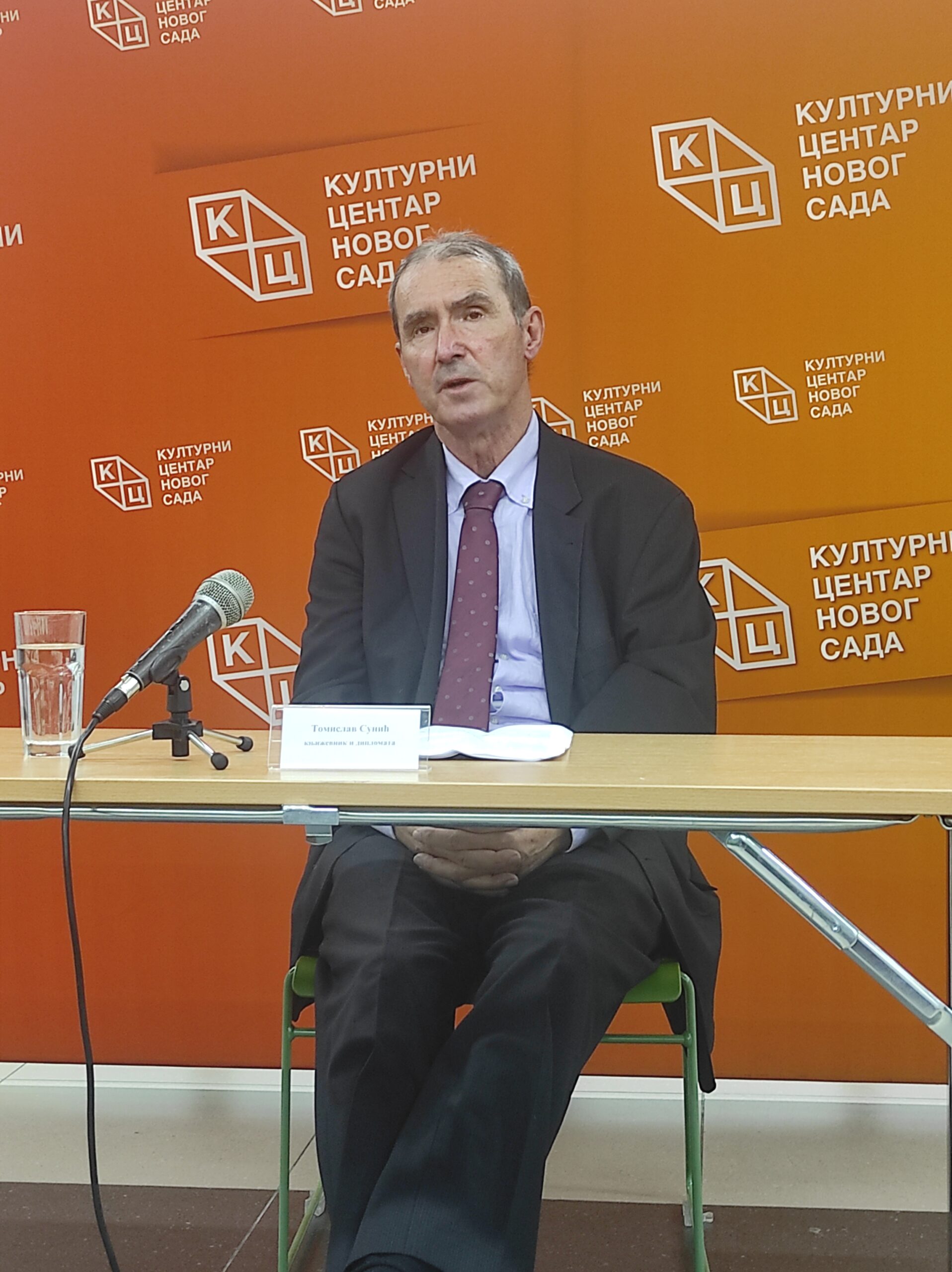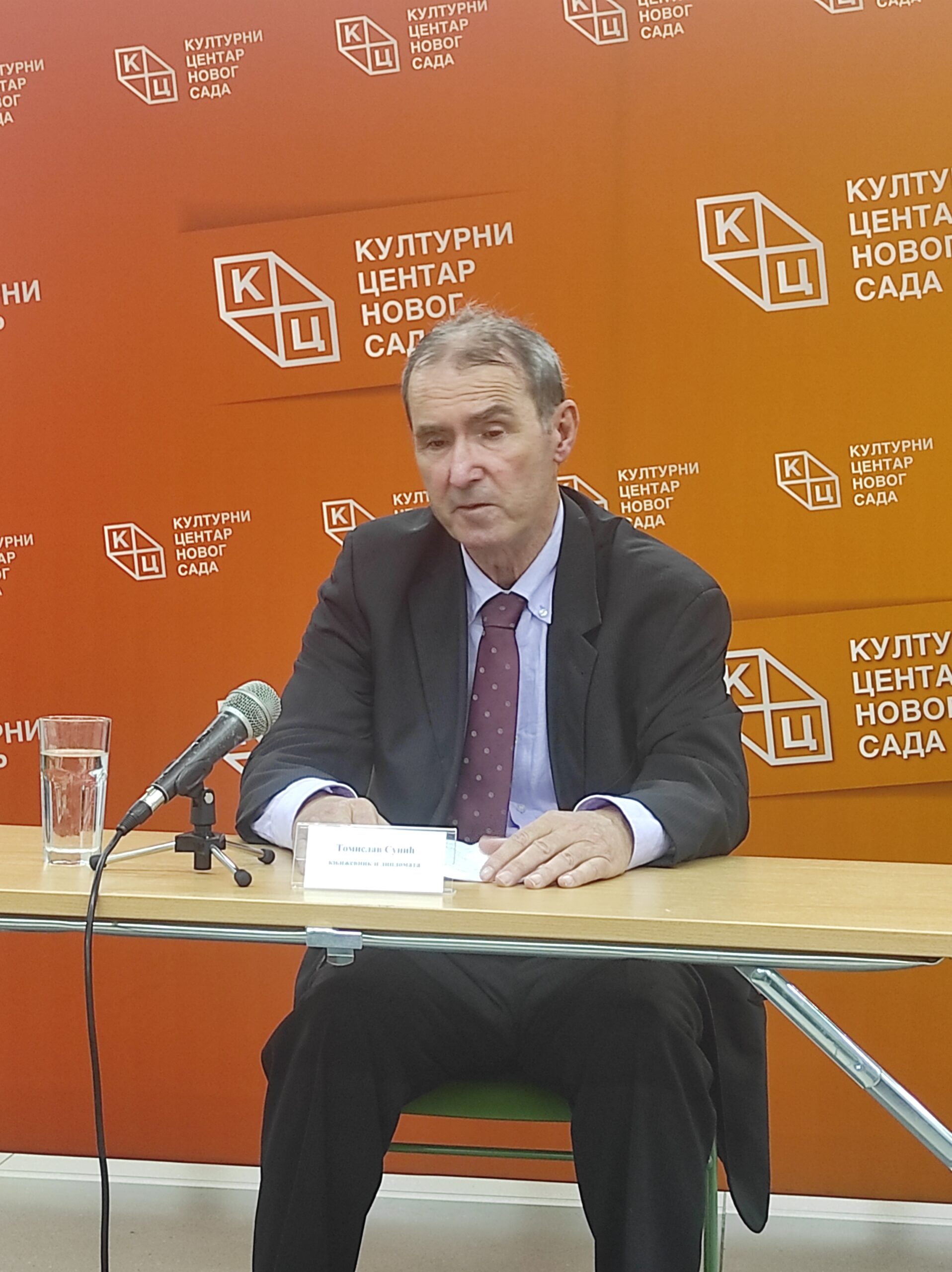 Предавање књижевника, дипломате и политичког емигранта Томислава Сунића на тему „Опадање у историјској перспективи, од Јувенала, Шпенглера до савременог либерализма: религија прогреса као покретач друштвеног расула” одржано је 14. децембра у Клубу „Трибина младих” Културног центра Новог Сада.