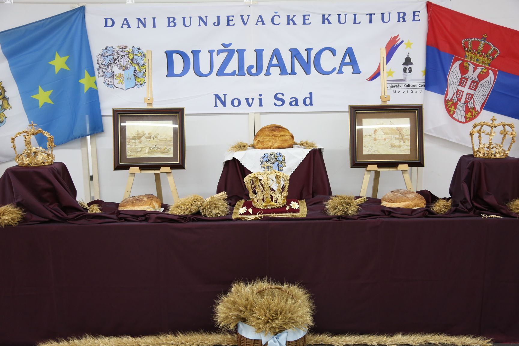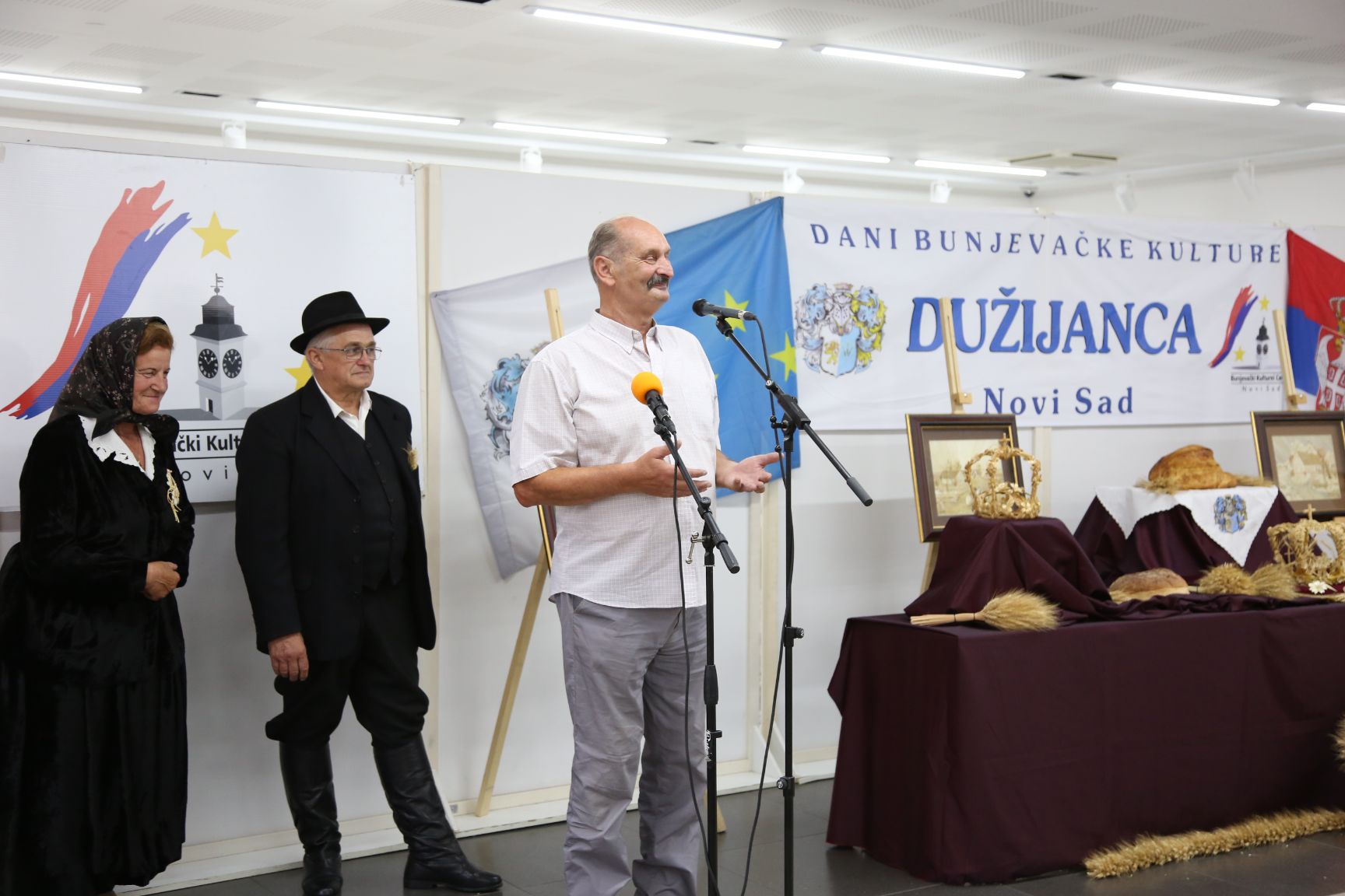 После уводне нумере коју је извела солисткиња Тамара Бабић, многобројну публику поздравио је Мирко Бајић, председник Новосадског Буњевачког културног центра и изразио велику захвалност што се и ове године обележава дан Дужијанце, дан Буњевачке националне заједнице који у фокус ставља крув – хлеб направљен од брашна новог жита.