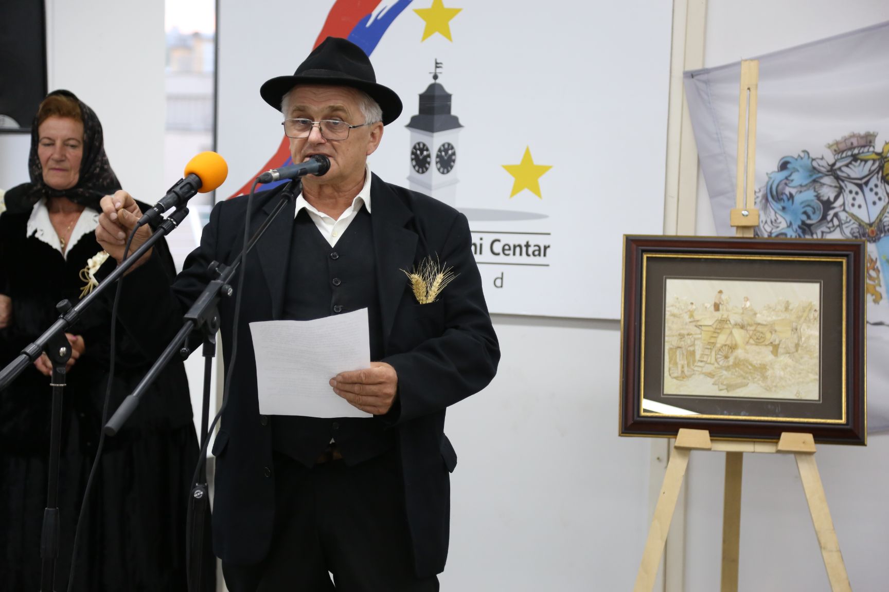 Напослетку, публици се обратио Стипан Будинчевић, уметник који ствара од снопа пшенице. Пред нама се налази круна од пшенице, као и неколико уметничких слика које су израђене управо од ове житарице.
