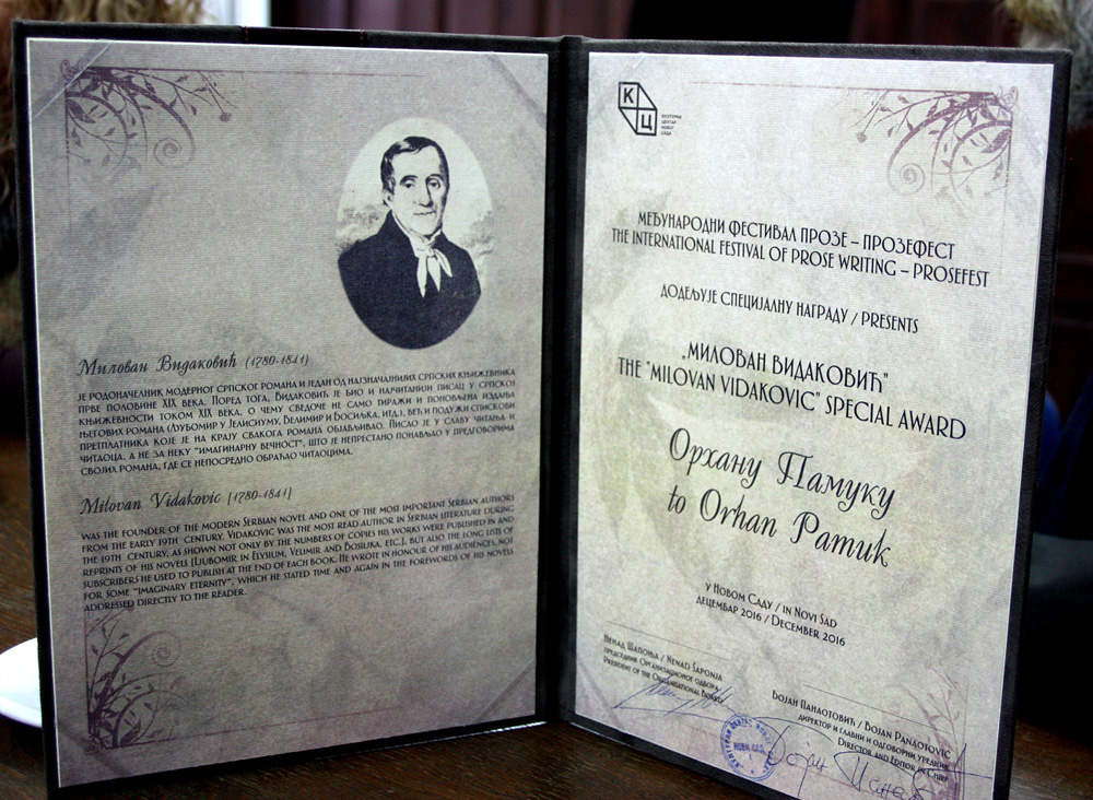 Поводом доделе Нобелове награде за књижевност чувеном мађарском писцу Ласлу Краснахоркаију који је 2022. године гостовао у КЦНС и понео престижну награду „Милован Видаковић“, директор КЦНС, Бојан Панаотовић рекао је: „У последњих десетак година, нобеловци су константа у Културном центру Новог Сада. Они су наши гости, пријатељи, сарадници чије књиге објављујемо и додељујемо им награде. Неке смо позвали када су већ били овенчани Нобеловом наградом, а неки су постали нобеловци убрзо након гостовања на нашим чувеним фестивалима. Прозефест, Нови Сад и КЦНС, у последњој деценији постали су стециште, средиште и круцијална тачка окупљања светске књижевне елите. Олга Токарчук, Марио Варгас Љоса, Орхан Памук, Петер Хандке и Ласло Краснахоркаи, само су нека од звучних имена иза којих следе многи мајстори домаће и светске литературе. КЦНС ће и у будућем периоду наставити да ниже врхунске резултате и афирмише стваралаштво и уметност, нарочито апелујући на младе људе да читају и одрастају уз књигу!“